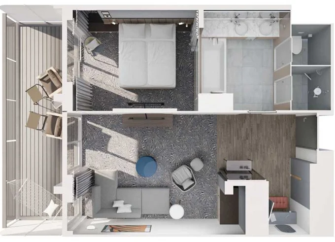 | JBBO - Junior Suite s balkónom B 26 m² + balkón 7 m² so stoličkami a podnožkami. 8-12. paluba. Max 4 osoby. Výhody Junior Suite. | 10 548 € 3 516 € za osobu | ||