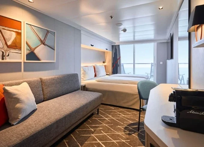 | SUWO - Weitblick Suite 45 m² + balkón 12 m² s hojdacou sieťou. Oddelená spálňa a obývacia časť, šatník. 14. paluba. Max 4 osoby. Výhody Suite. | 16 598 € 8 299 € za osobu | ||