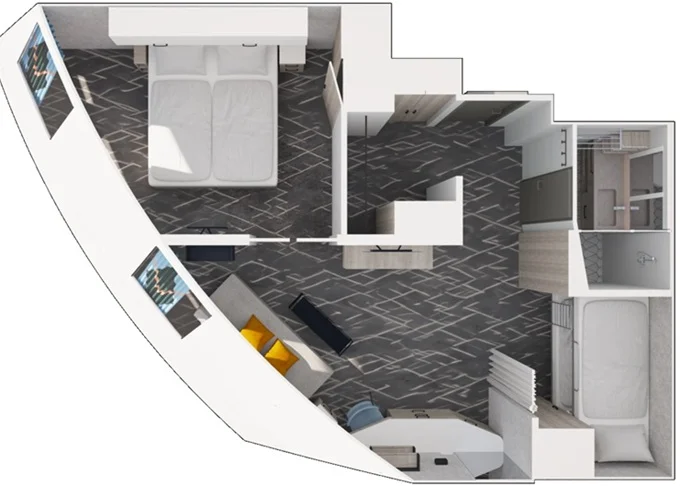 | JBCO - Junior Suite s balkónom C 26 m² + balkón 7 m² so stoličkami a podnožkami. 7. paluba. Max 4 osoby. Výhody Junior Suite. | 9 358 € 4 679 € za osobu | ||