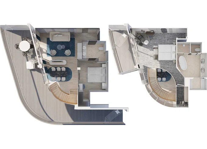 | VEPO - Kajuta s terasou Premium 30 m² + balkón 35 m² so stoličkami, ležadlami a hojdacou sieťou. 15. paluba. Max 2 osoby. | 7 062 € 3 531 € za osobu | ||