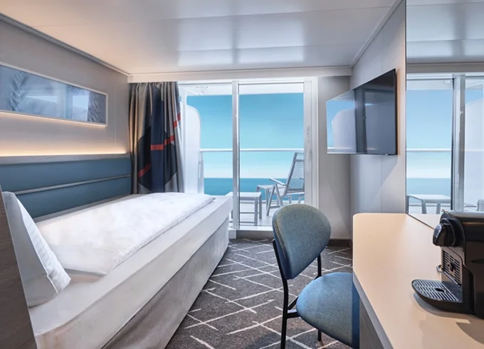| SSAO - Schöne Aussicht Suite 39 m² + balkón 10-12 m² s ležadlami a hojdacou sieťou. 7-14. paluba. Max 4 osoby. Výhody Suite. | 13 047 € 4 349 € za osobu | ||