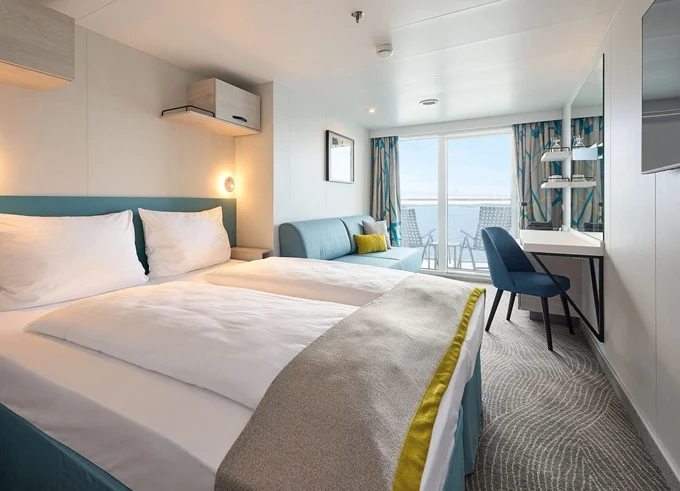 SUSO - Übersee Suite 40 m² + balkón 9 m² s ležadlami a hojdacou sieťou. 14. paluba. Max 4 osoby. Výhody Suite. 4 058 € 2 029 € za osobu